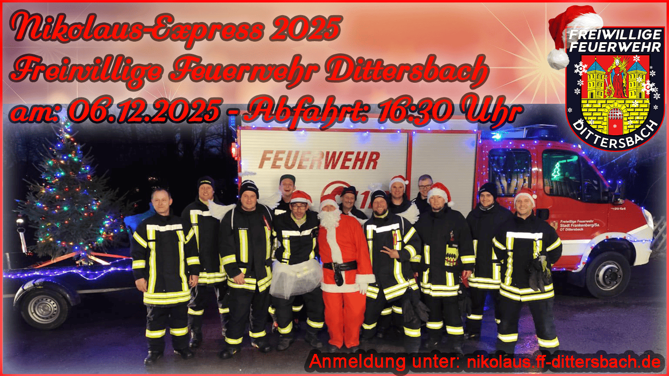 Der Nikolausexpress nimmt wieder Fahrt auf. Auch in diesem Jahr begleiten unsere Kameraden Herrn Nikolaus auf seiner Tour durch Dittersbach.Im Gepäck hat er erneut seine geschmückten und beleuchteten Schlitten. Und […]